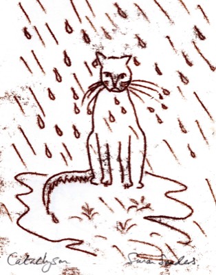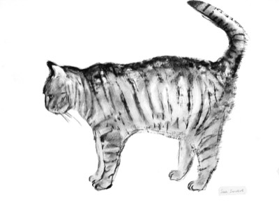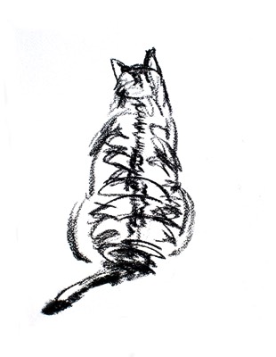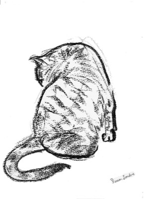 Washing cat - Charcoal - by Susan Sanders